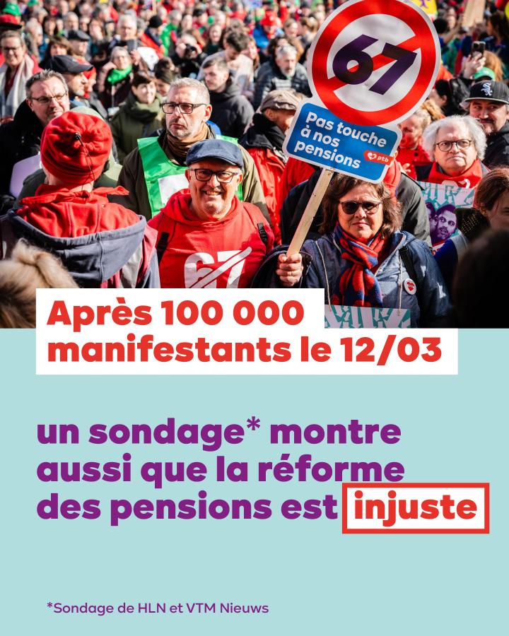 Ils ont un sérieux problème avec leur réforme des pensions. Après les 100 000 manifestants du 12 mars, un sondage de HLN et VTM Nieuws le confirme aussi : la réforme du gouvernement De Wever-Bouchez-Prévot est profondément injuste.