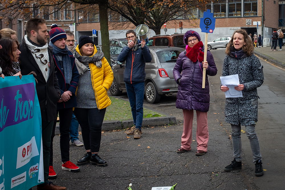 Le PTB a organisé ce midi décembre une action devant le Palais de Justice de Namur. Une cinquantaine de personnes se sont rassemblées pour rendre hommage aux 23 victimes de féminicide cette année. Des plaques de commémoration et des fleurs ont été déposées et un appel à l’urgence a été lancé : pas une de plus !