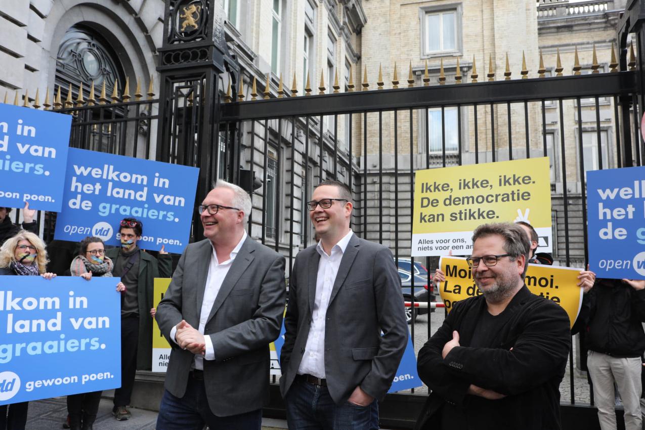Le parti de gauche a déployé des affiches, parodiant celles de la N-VA et de l’Open Vld, sur lesquelles on pouvait lire « Bienvenue au pays des profiteurs », « Moi, moi, moi, et la démocratie peut crever », ou encore « Tout pour nous, rien pour les autres ».