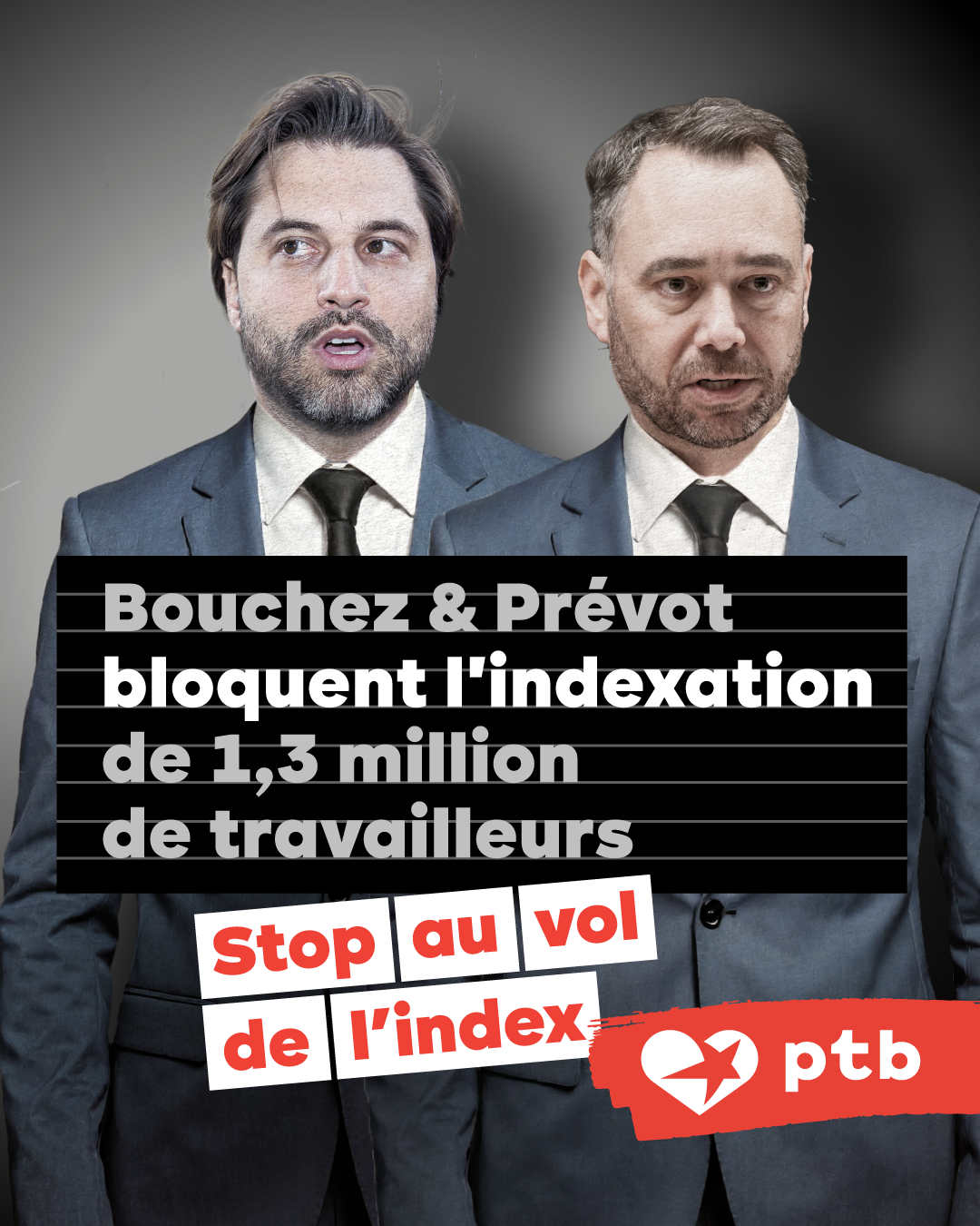 Vous vous souvenez de la campagne électorale du MR et des Engagés ? Vous vous souvenez des déclarations de Bouchez et Prévôt ? Chaque fois le même message : le travail doit être enfin récompensé, nous ne toucherons pas à l’index, etc. Mais derrière ces paroles, quelle est la réalité ? Une nouvelle fake news. Bouchez et le gouvernement Arizona ne protègent pas l’index, ils le volent à plus de 1,3 million de travailleurs et 1,2 million de pensionnés.
