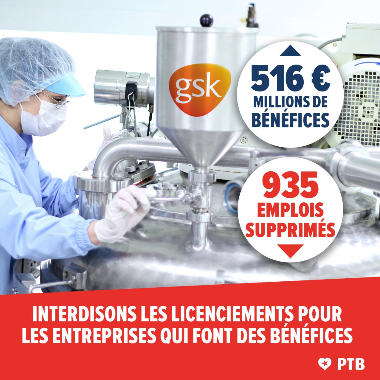 GSK, la multinationale n°1 mondial de l’industrie pharmaceutique, vient d’annoncer la perte de plus de 900 emplois en Belgique (720 licenciements et 215 non renouvellements). Malgré les plus de 500 millions de bénéfices réalisés en Belgique et les 3,6 milliards réalisés au niveau mondial. Malgré une loi sur mesure qui lui permet de payer seulement 0,1% d’impôt. Le PTB réintroduira sa proposition de loi pour interdire aux multinationales qui font des bénéfices de licencier.