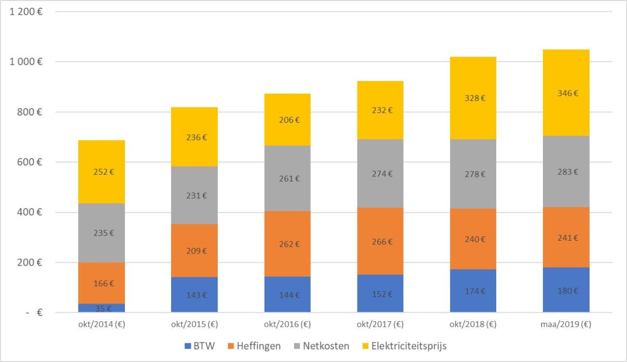 La plus forte augmentation des dernières années concerne cependant la composante TVA : l'augmentation du taux de TVA de 6 à 21 % en août 2015 a entraîné une hausse brusque et permanente de la facture d'électricité de tous les ménages belges.
