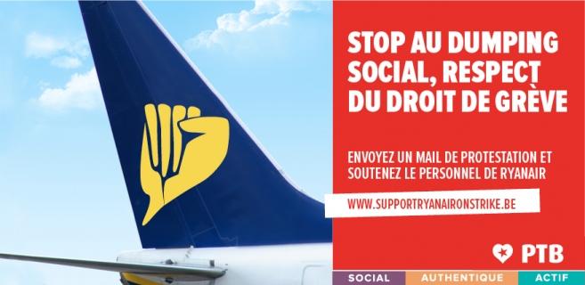 Ryanair et son PDG, Michael O'Leary, sont d’ailleurs connus pour bafouer tous les droits sociaux : refus de payer les jours de maladie ou de respecter les lois sociales, cadences intenables, menaces de sanctions contre les grévistes… Ils vont jusqu'à faire payer l'eau bue par le personnel. « Tout cela, pour assurer des bénéfices qui se comptent en milliards à M. O'Leary et aux actionnaires », poursuit le porte-parole du PTB.