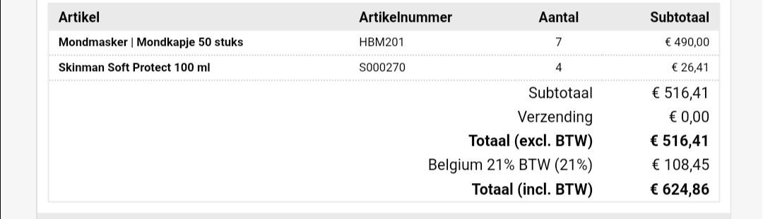Le prix de ces masques perfectionnés ? 224 euros pour 25 pièces. « Le commerçant reconnaissait lui-même que 'ce prix est un peu plus élevé que ceux que nous pratiquons habituellement, mais nous n'avons malheureusement pas le choix, compte tenu de la forte augmentation des prix d'achat due à la pénurie', ajoute Sofie Merckx ».