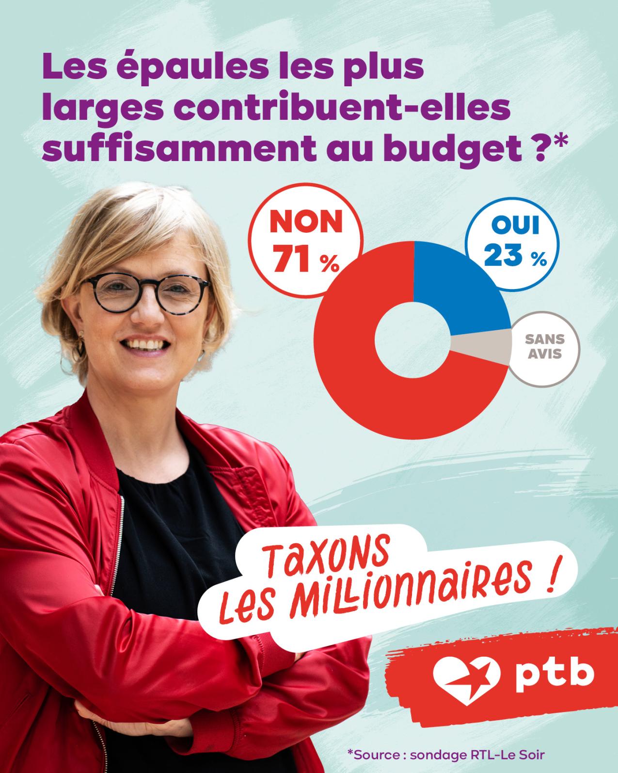 « Les réponses du dernier Grand Baromètre portent un message clair pour De Wever et Bouchez : 7 personnes sur 10 voient très bien que ce gouvernement fait payer les travailleurs et épargne les super-riches. Les travailleurs en ont marre de payer : allons chercher l’argent là où il est », réagit Sofie Merckx, cheffe de groupe PTB à la Chambre.
