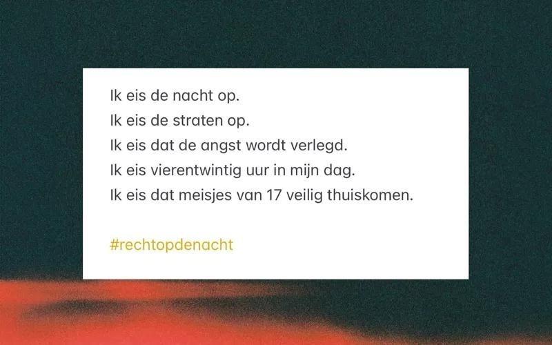 Ce poème, écrit par l'actrice et autrice néerlandaise Nienke ‘s Gravemade, a été largement partagé sur les réseaux sociaux suite au meurtre de Lisa. Avec ce poème, l'artiste exprime le sentiment d'insécurité auquel sont confrontées d'innombrables femmes. Elle revendique le droit à la nuit. Le texte est accompagné du hashtag #rechtopdenacht (#droitàlanuit).