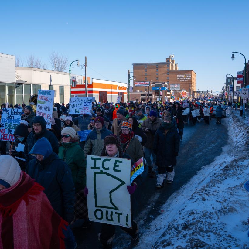 Zoe Alexandra. Minneapolis est vraiment spéciale. Je connais peu d’endroits au monde où 100 000 personnes descendent dans la rue par -30°. Ce n’est pas une blague : vendredi, il faisait vraiment -30°. Mais c’était plus qu’une manifestation. Il y a aussi eu une grande grève générale : des centaines de commerces ont fermé après un appel des syndicats et des dirigeants religieux, qui a été massivement amplifié par des groupes d’étudiants, de petits entrepreneurs et des communautés de migrants. C’était une démonstration de force historique.
