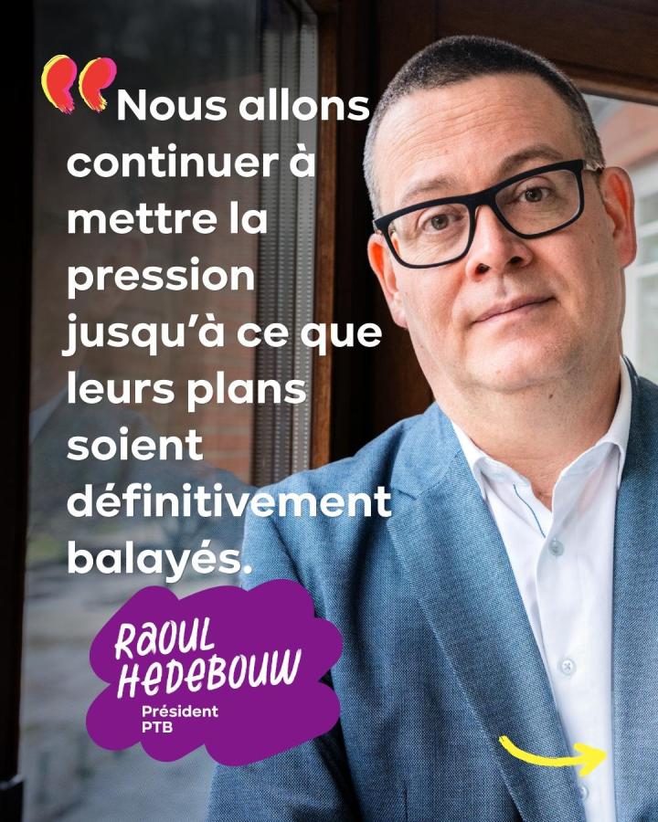 « Le gouvernement tente de faire adopter à la hâte par le Parlement des mesures radicales telles que la réforme des pensions et le blocage de l'index. Ce n’est pas un hasard : ils savent que leur casse sociale n'a pas le soutien de la population, ajoute Raoul Hedebouw. Ils se heurtent sans cesse à la résistance du mouvement social qui est dans la rue depuis 16 mois, mais aussi à des procédures et des conseils qu'ils continuent d'essayer d'ignorer. Une fois de plus, le gouvernement fait fausse route et est rappelé à l’ordre. »