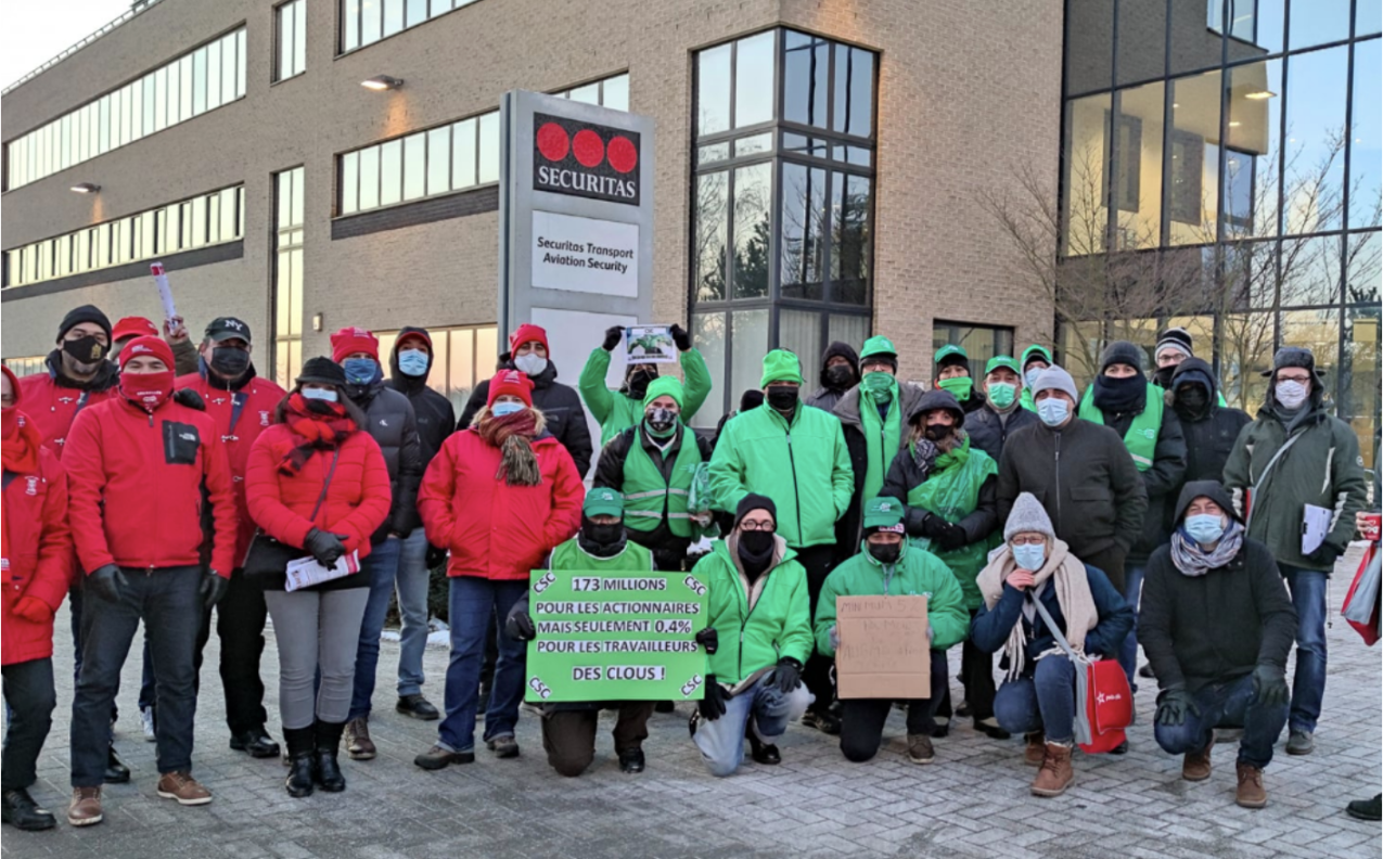 Action devant le siège de Securitas à Bruxelles.