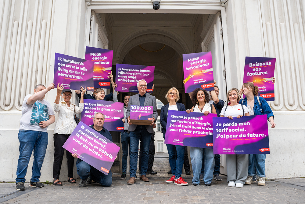 Sofie Merckx, notre cheffe du groupe à la Chambre, a remis 100 000 signatures au Premier ministre Alexander De Croo pour faire baisser les factures d’énergie. Pendant des mois, nos membres ont mené campagne pour notre loi énergie, qui vise à bloquer les prix de l'énergie et à faire payer Engie. Comme l'explique Sofie Merckx : « L'urgence est grande, surtout maintenant que le gouvernement a décidé de mettre fin au tarif social élargi dès le 1er juillet. »