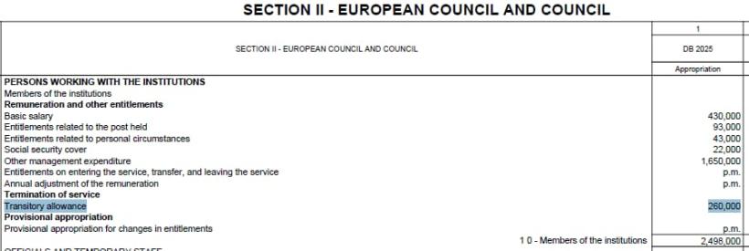 260 000 euros. Voilà le montant incroyable que le Conseil européen a prévu dans son budget pour l’indemnité de sortie de Charles Michel. Marc Botenga, député PTB, a découvert ce parachute doré indécent en analysant le budget du Conseil européen. (voir l'image ci-dessous)
