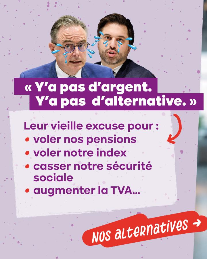 « Il n’y a pas d’alternative. » De Wever, Bouchez et compagnie prétendent que leur politique de casse sociale est inévitable. Pourtant, rien n’est plus faux. Que ce soit pour financer les pensions et la sécurité sociale, pour garantir des pensions décentes ou pour assurer un avenir industriel en Belgique, d'autres choix sont possibles.