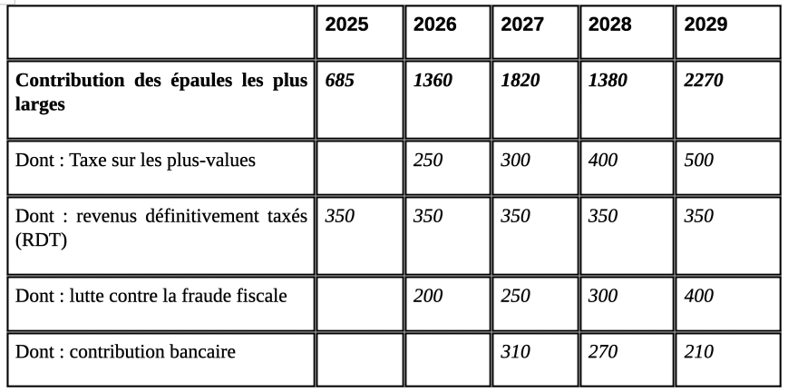 Mesures fiscales portant sur les « épaules les plus larges » en millions d’euros par an
