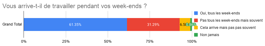 - 92,8 % travaillent très fréquemment le week-end ;