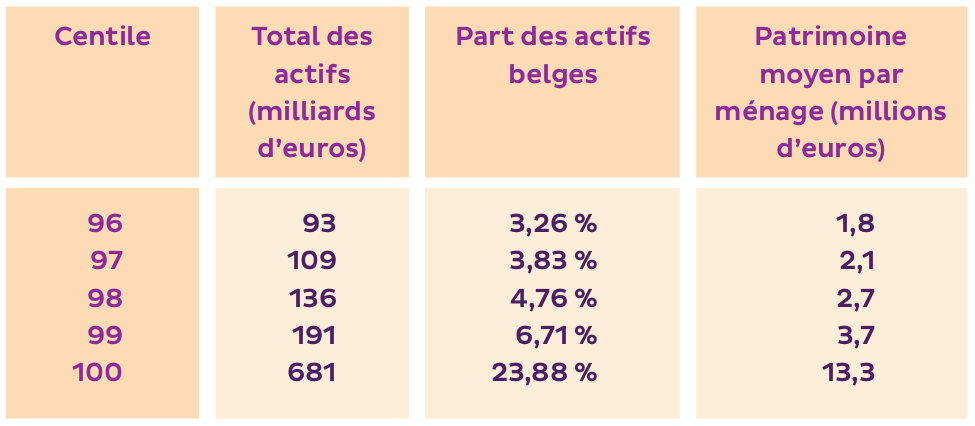 Il en résulte la répartition suivante du patrimoine pour les cinq centiles les plus riches :