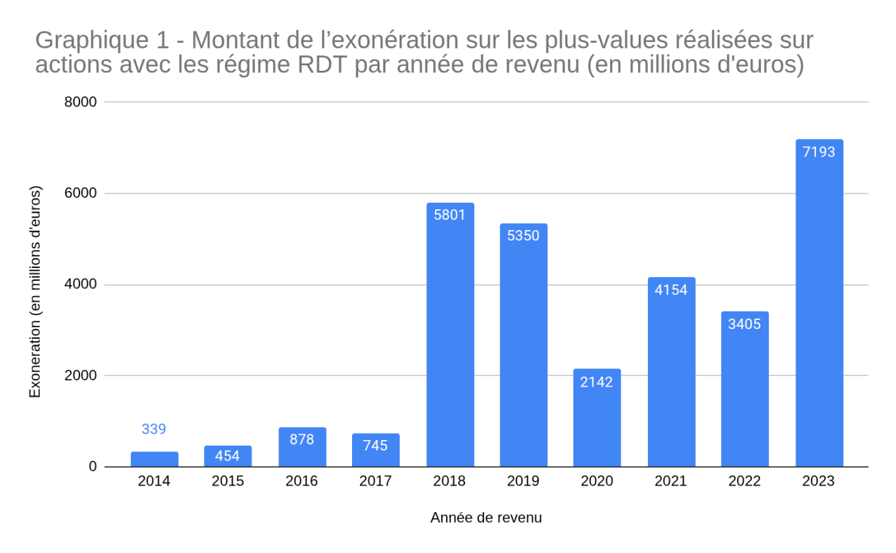 TABLEAU 1 - Montant de l’exonération sur les plus-values réalisées sur actions avec les régime RDT (en millions d’euros — par année de revenu)